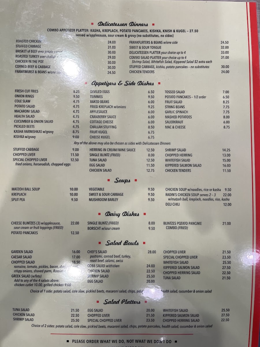 Radin’s Delicatessen offers a classic deli menu rooted in comforting, hearty fare that makes it a favorite spot for a fulfilling meal any time of day. The selections are straightforward, focusing on generous portions of traditional deli sandwiches, savory knishes, and warming soups that invite a relaxed and satisfying dining experience.